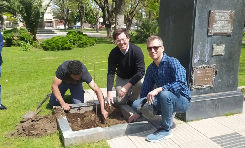 La UPSO y el Municipio plantaron un espinillo en la plaza central en apoyo a la biodiversidad