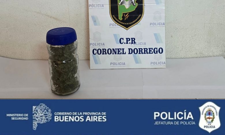 Al momento de la identificación y posterior requisa del rodado, el personal policial constató que en el interior del habitáculo se transportaba un frasco de vidrio con flores de marihuana (cogollos).