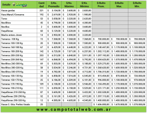 Enseguida apareció la vaca, o mejor dicho los “vacones”: verdaderos tanques de hasta 600 kilos que se movieron entre los 3.200 y 3.600 pesos. Unos escalones más abajo se ubicaron la manufactura y conserva, que se defendieron muy bien; ejemplo de ello fue un lote a 1.900 pesos. Sin dudas, se nota la mejora en los campos, reflejada en el gran estado general de la categoría.